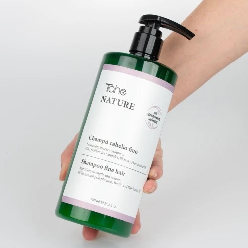 Tahe Nature Fine Hair Shampoo is ontwikkeld voor de gerichte verzorging van fijn, slap of snel verzwarend haar. Deze professionele shampoo reinigt de hoofdhuid op milde wijze en ondersteunt tegelijkertijd de natuurlijke haarstructuur, zodat het haar meer volume, stevigheid en veerkracht krijgt.